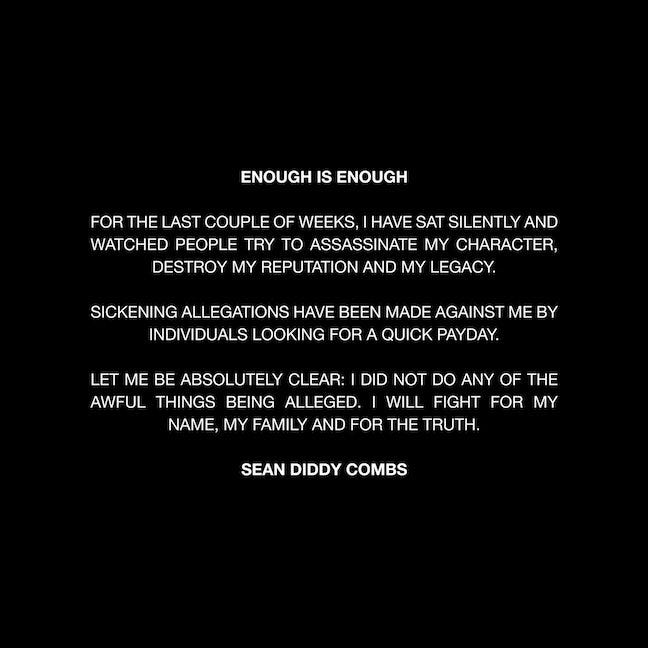 Diddy released a statement in ALL CAPS.