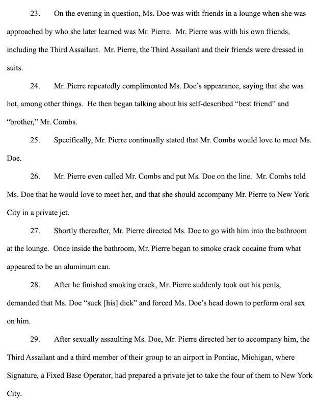 The 14-page complaint has a “trigger warning” on the front page, just like Cassie’s did. It was filed in the Southern District of New York on Wednesday.