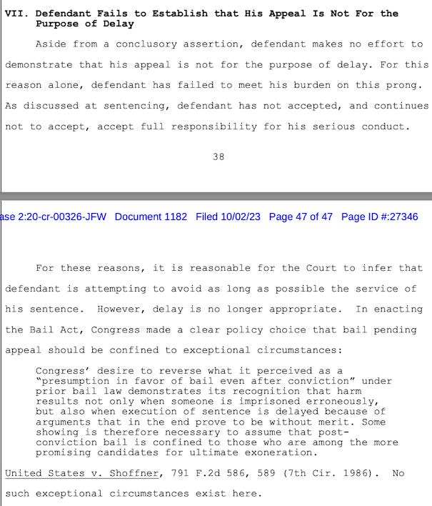 I discussed the bail pending appeal in a YouTube live on Friday.