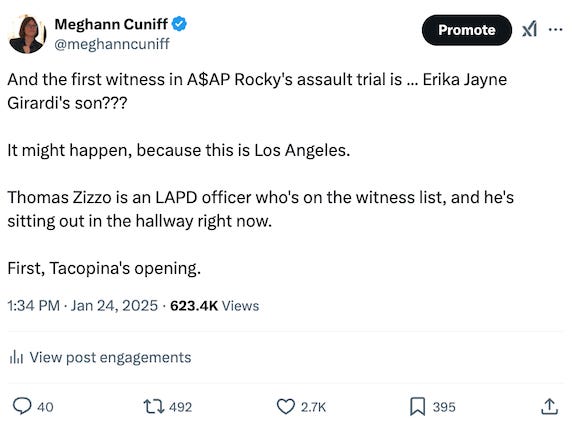 Tacopina pointed out in his opening that the bullets found in the magazine were labeled Sig Luger, while Relli’s shell casings were Federal Cartridge 9mm luger brand. Tacopina also said Rocky’s tour manager Lou Levin will testify that the 9mm magazine in Rocky’s home belongs to him.