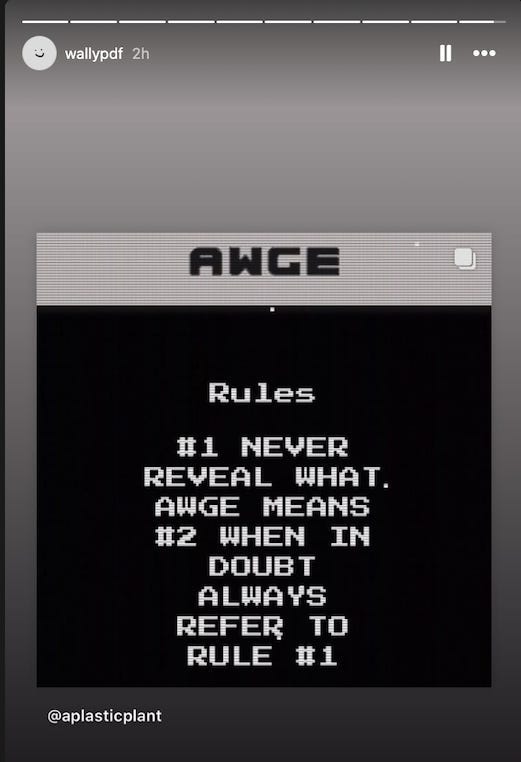 His “Don’t say it” command is best explained on AWGE’s website, which describes it as a creative agency with two rules: 1) “Never reveal what AWGE means” 2) “When in doubt always refer to rule #1”.