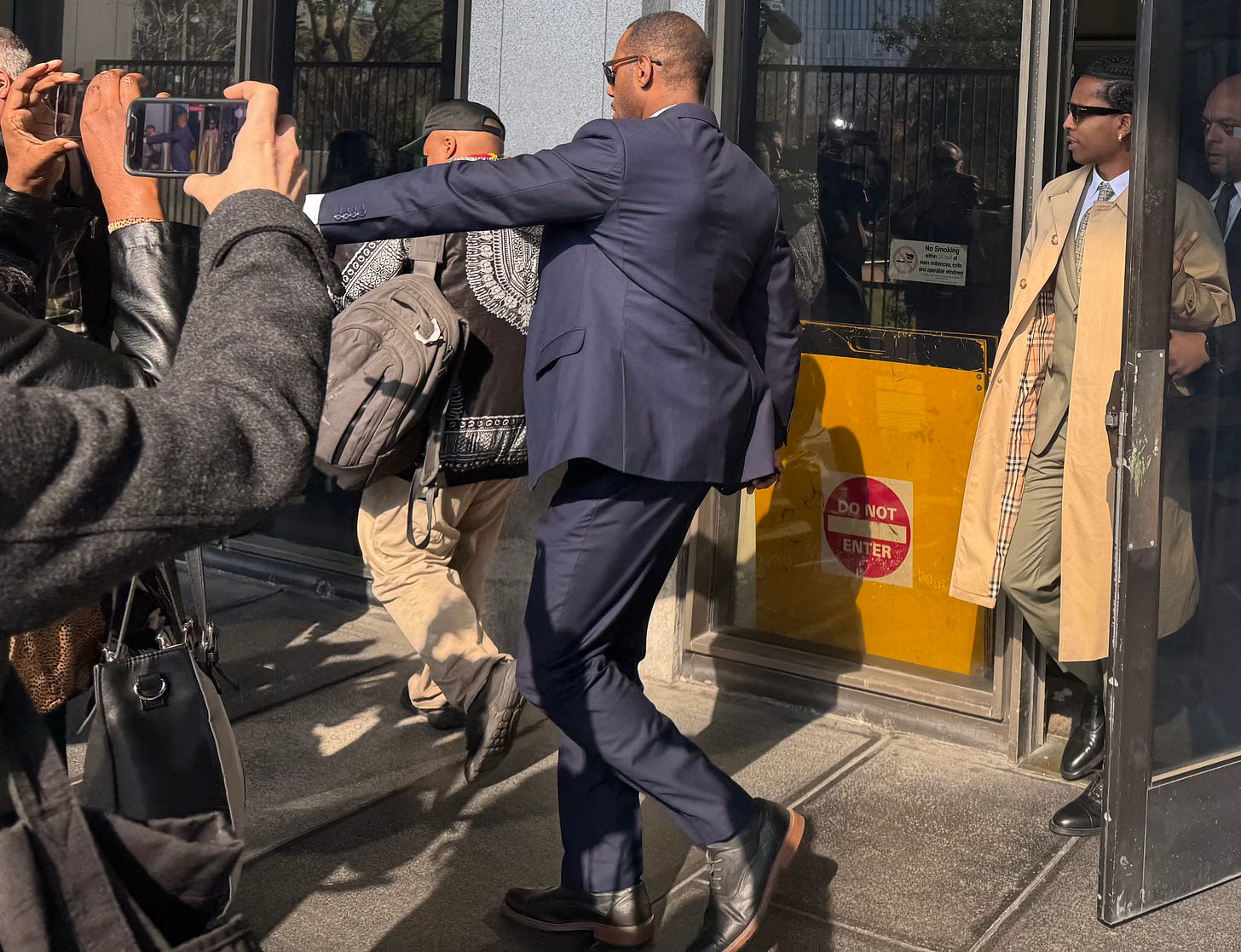 Tacopina questioned Relli about surveillance video of his confrontation with Rocky on Thursday afternoon. He told Tacopina he can’t tell whose hand moves first in the video because part of the confrontation isn’t visible. Tacopina said Rocky’s right hand comes up after Relli’s left hand is up, and Relli said, “He’s grabbing me. You see him literally grabbing my arm, bro. You see him tugging at me.”