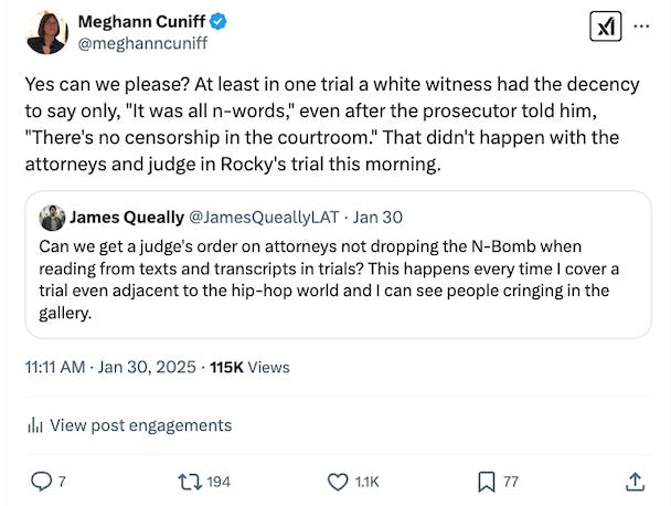 Later in the day, Judge Arnold told the attorneys, “If there’s an exhibit or any recording that has the n-word, I want you to say ‘n-word.’”