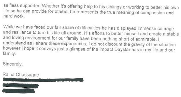 One letter poignantly describes how incarceration affects a criminal’s defendants friends and family.