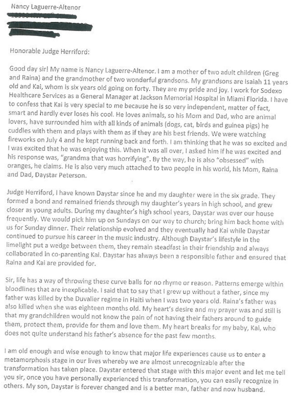 Other writers include Raina Chassagne, the mother of Lanez’s six-year-old son and to whom Lanez announced his engagement during last week’s sentencing. She has known Lanez since they were students together at Glades Middle School in Florida, and she spoke about his good relationship with his son and his problems with alcohol. Her letter does not mention alcohol but discusses his dedication and resilience.