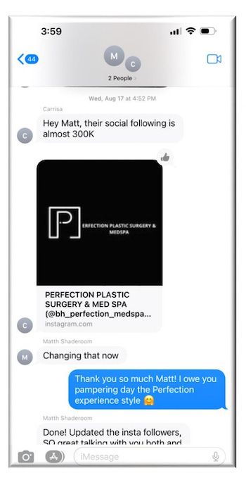 The complaint includes a text message in which Kogan’s talent agent, Carissa Rossi, corrects Shade Room reporter Matthew McNulty post-publication about the spa’s social media following.