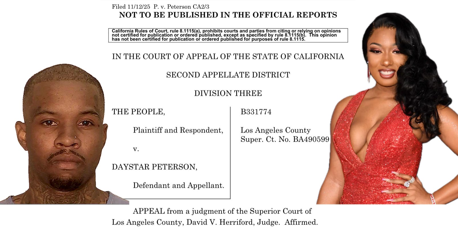 The opinion is unpublished, which means it does not establish new case law and is not citable in other cases. It was filed one week before trial is to begin in Miami, Florida, a federal defamation lawsuit Megan is pursuing against an online commentator her lawyers say is working with Lanez and his family to perpetuate “a years-long campaign to smear and intimidate” Megan.