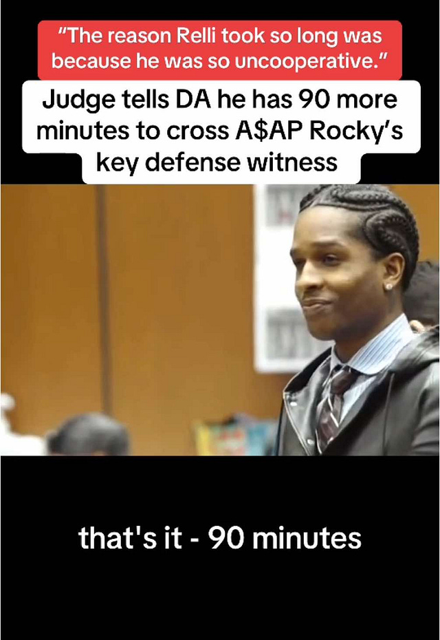 Additionally, Relli said he wasn’t sure if a photo Tacopina showed him of his girlfriend was actually her, though the photo was not entered as evidence and jurors never saw it. Judge Arnold later said he believed Relli was protecting her; the incident led to a shouting match between Tacopina and Deputy District Attorney John Lewin after the jury left and while Rocky’s partner Rihanna was in the courtroom.