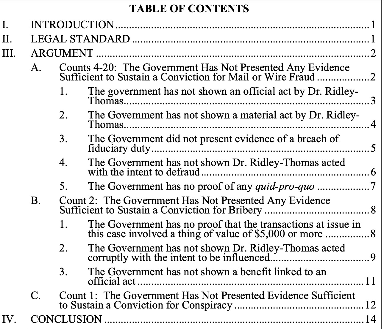 Acquittal motion: Ridley-Thomas’ have filed a written motion for a judgment of acquittal under Rule 29 of the Federal Rules of Criminal Procedure.