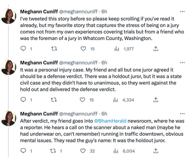 When jury deliberations begin, most trial watchers share a general hope that the verdict will be quick and concise and we’ll get to cut out of the courthouse in time for a sunny weekend.