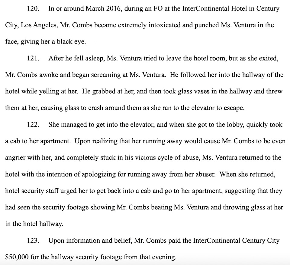 The assault took place at the now-closed InterContinental Hotel in Los Angeles’ Century City after what the complaint describes as abusive escapades with hired sex workers that Diddy called “freak offs.”