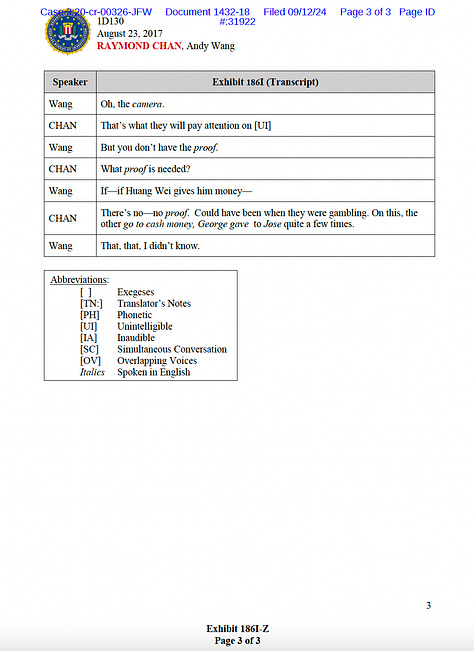 Prosecutors based their standard range calculation partly on the amount of money associated with Chan’s bribery and honest services fraud convictions, which they said was $1.95 million. The money included $1,679 Chan paid for Kendrick Lamar concert tickets and $1,932.76 he paid for tickets to a San Francisco Giants versus Los Angeles Dodgers baseball game.