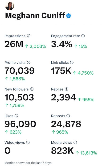 I also enjoying a surge in attention on the platform formerly known as Twitter, where I’m currently sitting at nearly 104,500 followers and get more views on there than all other social media sites combined.