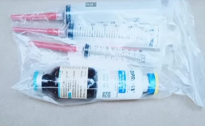 She said her husband had a syringe he’d apparently retreviewd from his backpack.