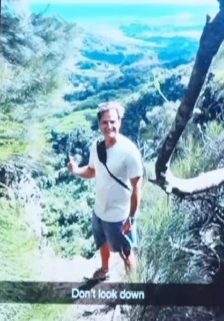 Ms. Konig testified her husband hiked to the top of the trail alone after she said she didn’t want to continue. He met her on the way down and they took photos of each other that they shared with family on Snapchat. Jurors saw one of Mr. Konig at the edge of the trail with the caption, “Don’t look down.”