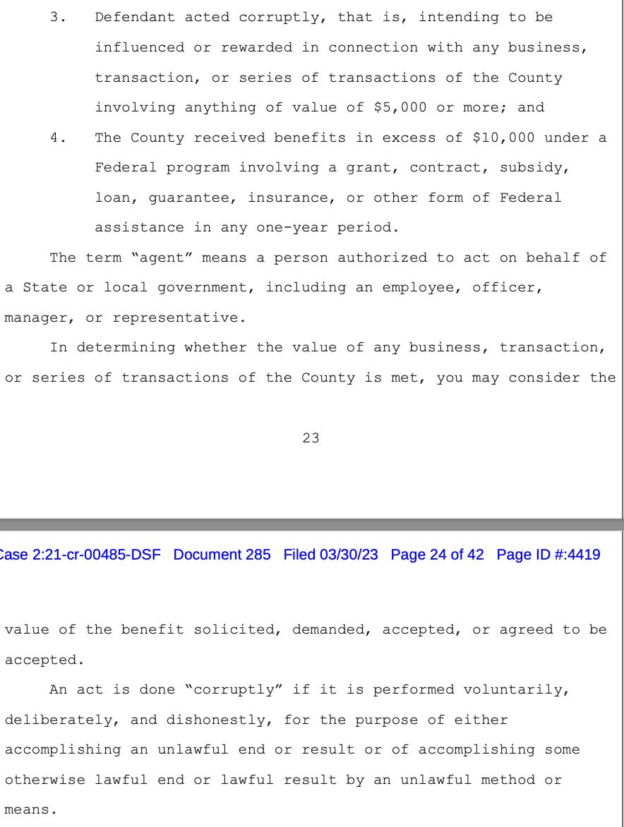 Jurors had already asked about jury instruction 20 in jury note #4, questioning whether they needed to find “all the elements in the definition of ‘corruptly’ or if it was merely there for reference.” They were told the government “must prove that the defendant acted corruptly.”