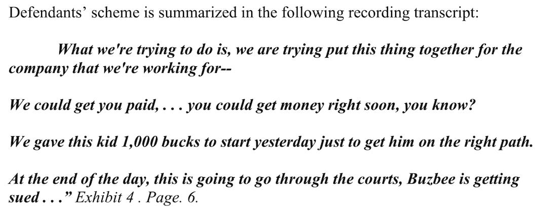 “LET ME BE CLEAR: we will not be bullied or intimidated. The Defendants this time overstepped, got sloppy, and stupidly got caught at their illegal scheme on tape,” Buzbee wrote.