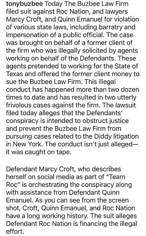 Dec. 18 Buzbee’s lawsuit against Roc Nation and Quinn Emanuel