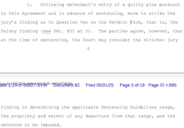 He faces up to 10 years in prison, but the agreement Essayli authorized last week says if he pleads guilty to misdemeanor deprivation of rights under color of law, the U.S. Attorney’s Office will “move to strike the jury’s finding” that he injured his victim, which made his crime a felony.