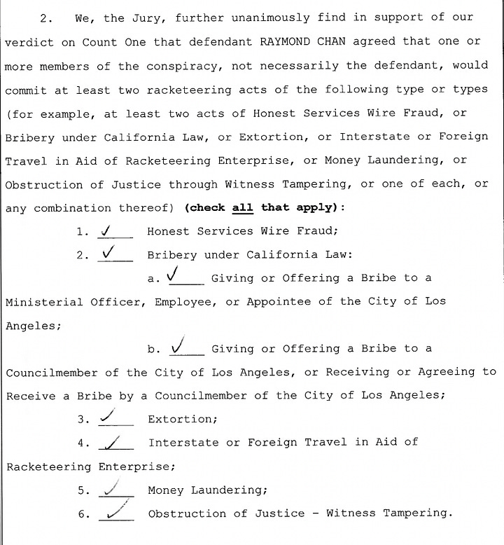 “The residents of Los Angeles deserve much better. With today’s verdict, we send a strong message that the public will not stand for corruption and that pay-to-play politics has no place in our community,” Estrada said.