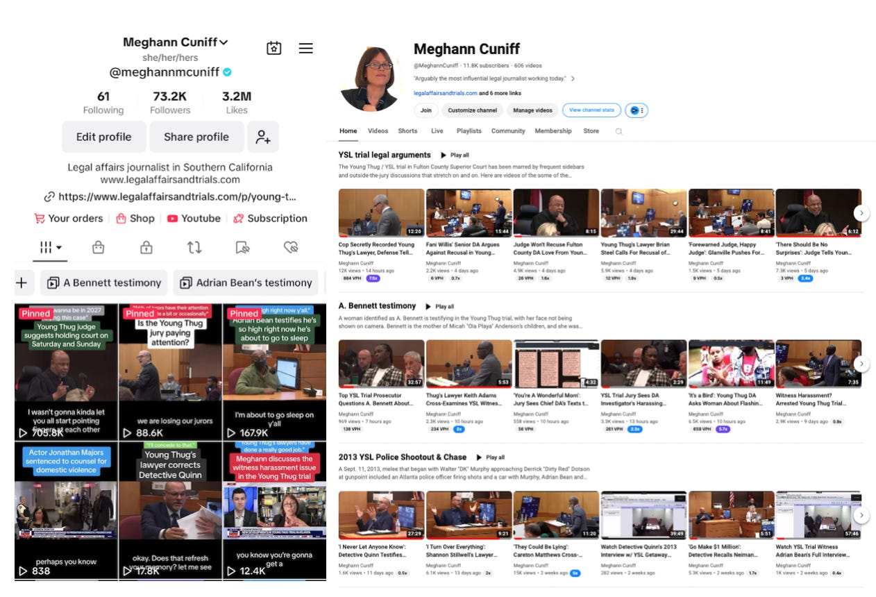 I continue to post copious amounts of clips on TikTok and YouTube, and people continue to be stoked about it. I’m up to 73,000 followers on TikTok, and I’m nearing 12,000 subscribers on YouTube. (Similar content, different formats.) I’m also now taking paid subscriptions on TikTok for $2.99 a month, for access to exclusive live discussions and analysis of the trial. You can be one of my first subscribers.