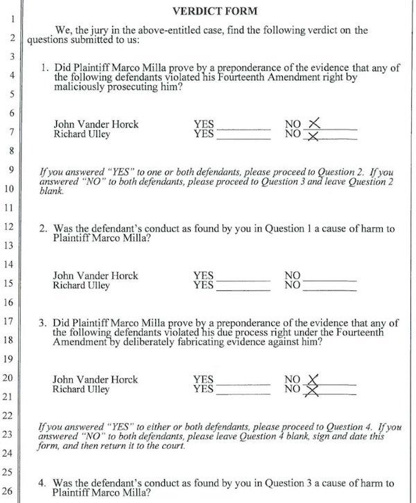 Milla, 39, collected $654,500 from the State of California in February 2016, but he’d hoped for millions of dollars more through his civil lawsuit. He left the Ronald Reagan Federal Building & Courthouse last Thursday with his head down and a mixed reaction of sadness and disbelief to a verdict that wrongful conviction experts say is not uncommon.