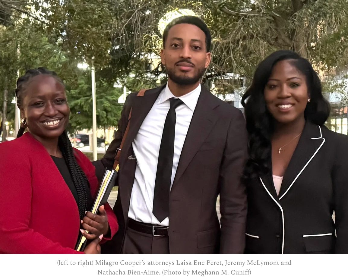 Judge Altonaga granted Milagro’s lawyer Laisa Ene Pertet’s motion to withdraw from the case on Tuesday. Pertet, who is based in New York City, wrote that Milagro is “unable to afford any future legal services for my continued representation” but that McLymont will continue to represent her.
