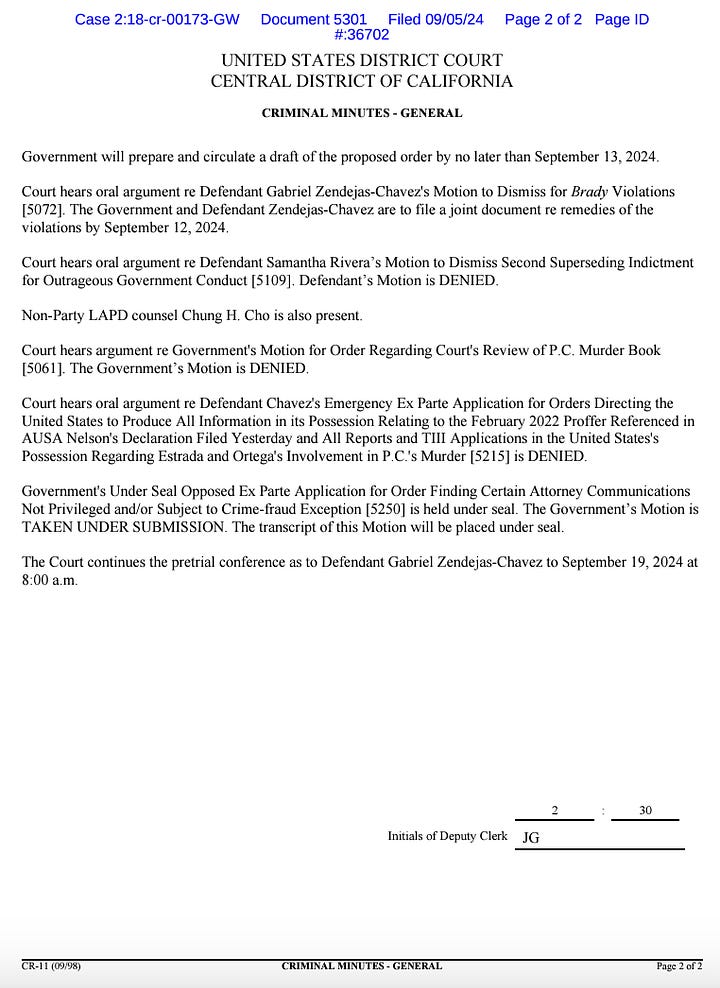 The second motion a week later included more details about the new information as well as Blanco’s emails with prosecutors in which she requested all information regarding the murders and the “stepping down” of a Mexican Mafia member that was a key focus of trial. She specifically told them to check the state prison files for the informants and said she needed confirmation “that someone has reviewed pertinent central and confidential files for relevant and exculpatory information.”