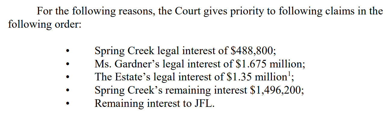 Selna issued a tentative ruling that divides the jet this way: (Spring Creek is Parrish’s company.)