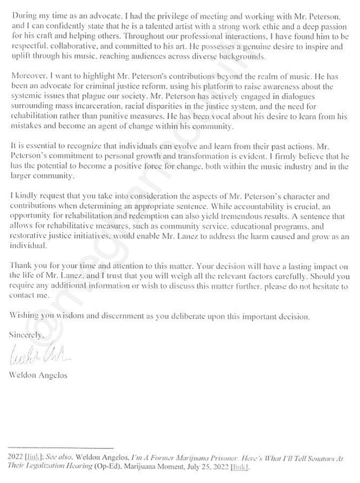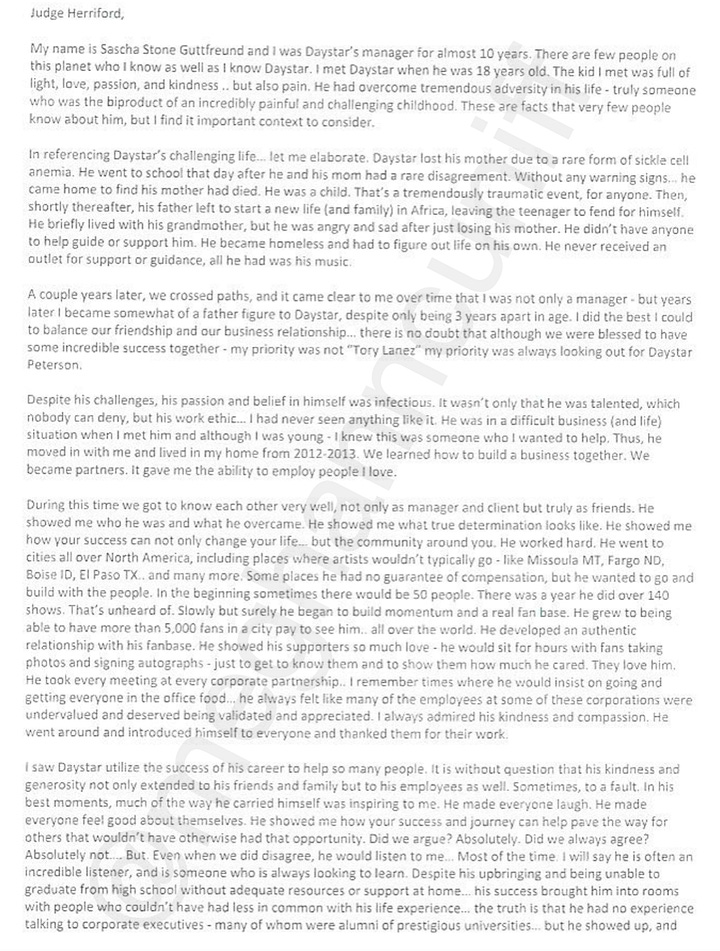 Many letters discuss the huge number of people who depend on Lanez for their livelihoods, from Unite the People to his own employees who are accustomed to being highly compensated.