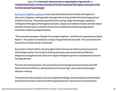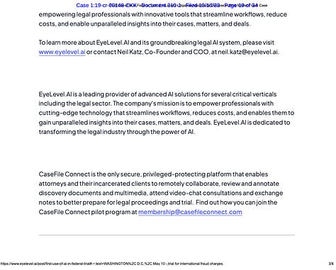 Kenner was upfront about both his use of artificial intelligence and Israely’s involvement in the case, which he said in court “was primarily due to a company he then owned called BIA.” Kenner said BIA “was retained for the purpose of receiving 2.7 million pages of discovery that was sent out by the government,” according to a court reporter’s transcript.