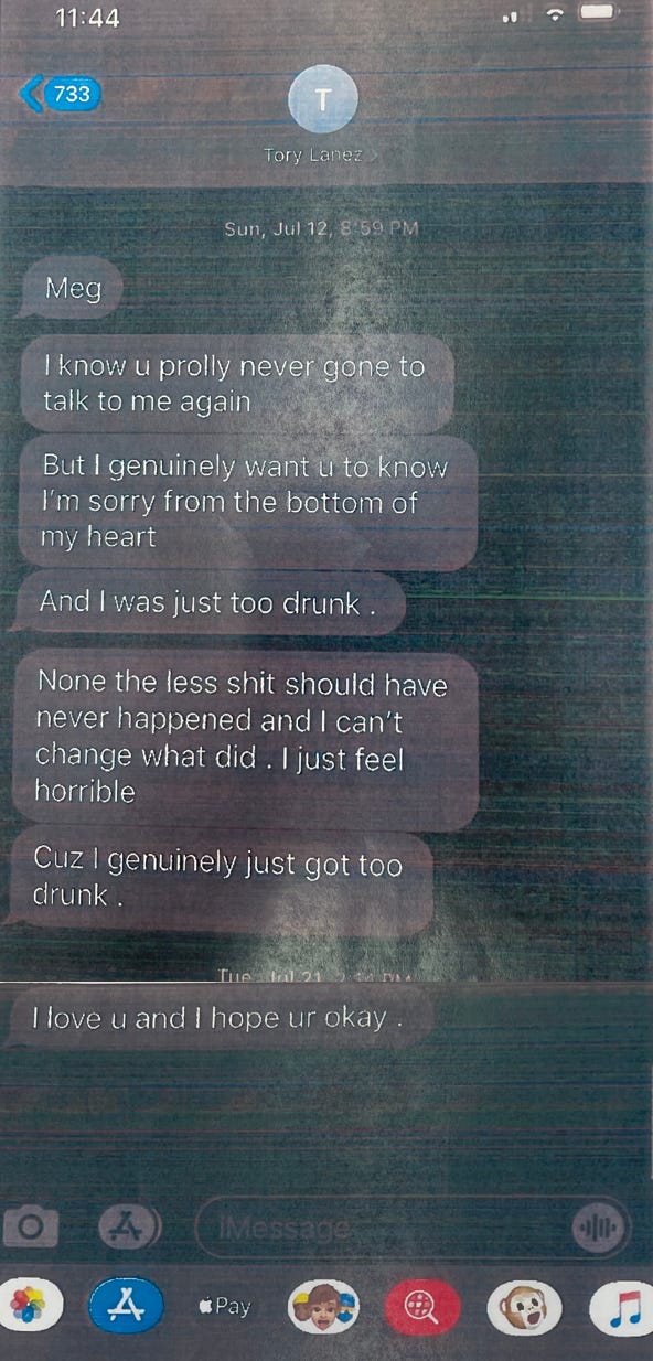 Lanez’s post-shooting apologies took two forms: One was a series of text messages he sent Megan after he got out of jail.