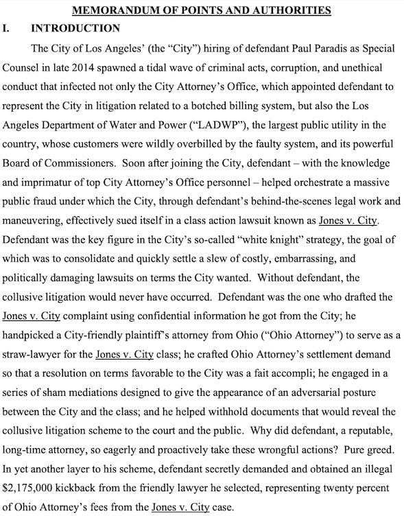 Paradis pleaded guilty in January 2022 to a federal bribery charge related to $2.175 million in kickbacks he accepted as attorney fees in a class action over water rates at the Department of Water and Power. His role in the lawsuit put him in secret conflict with his own client: He was suing the city on behalf of a ratepayer when the city hired him to file a separate lawsuit on behalf of the city.