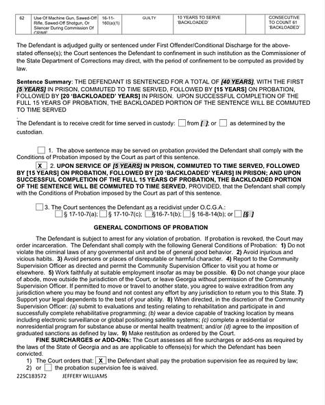 Williams’ total sentence is 40 years, to serve five in prison but commuted to time served, then 15 years on probation. Then 20 years are “backloaded,” Whitaker said, which means he’ll serve 20 years in prison if he doesn’t complete them.