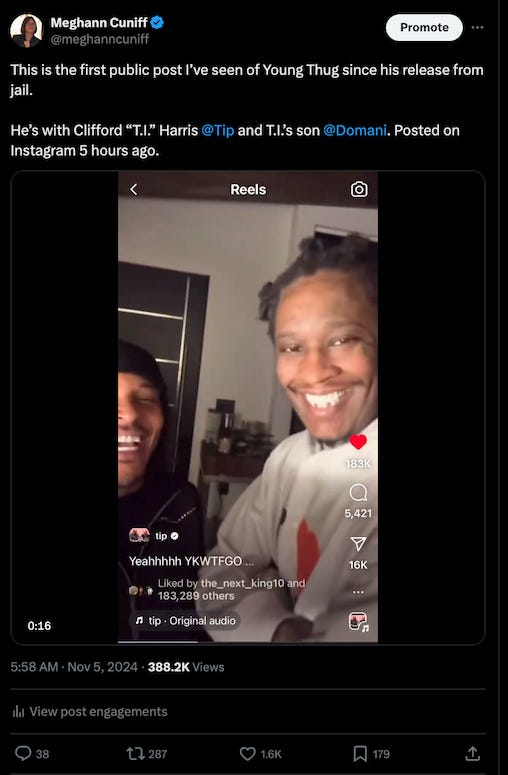 Young Thug celebrates jail release as YSL gang trial continues for two codefendants