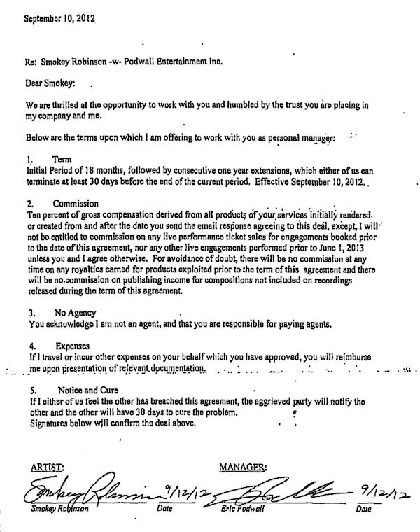 Prior to hiring Podwall, “I have always been managed by people connected to Motown,” Robinson said. “So that was like my protection, because we were family. … I didn’t have to scrutinize what they were saying in the management contracts.”
