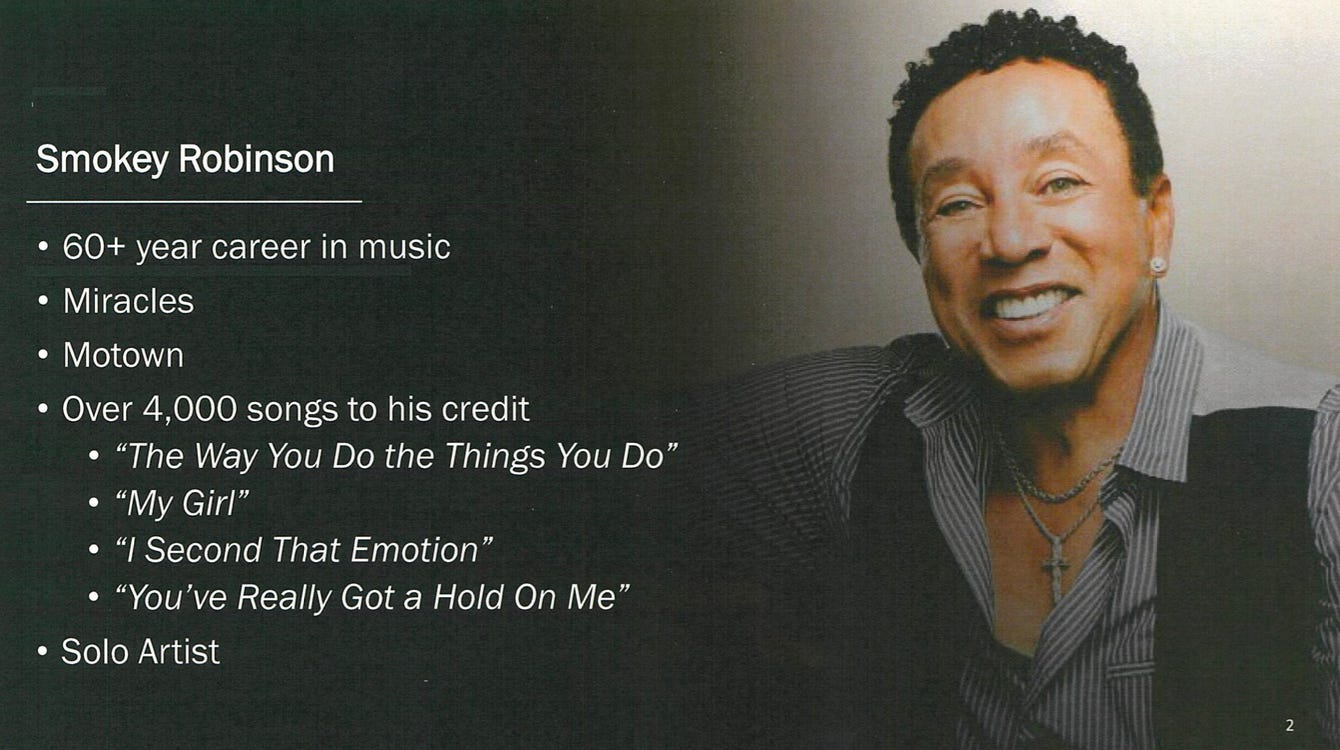 Frid told the jury in his closing argument that Robinson had “done a lot of things” in his more than 60-year career, from helping start Motown to performing all over the world and writing “some of the most iconic songs of our time.”