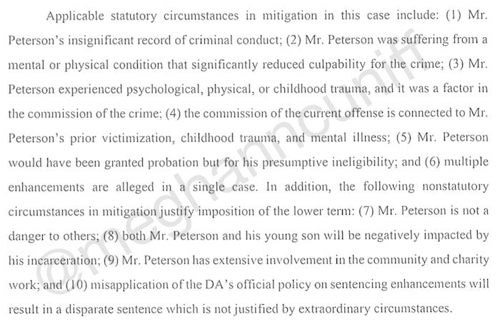 “Accordingly, this Court should find that Mr. Peterson has overcome the presumption of ineligibility and exercise its discretion to sentence him to a term of probation,” according to the memo.