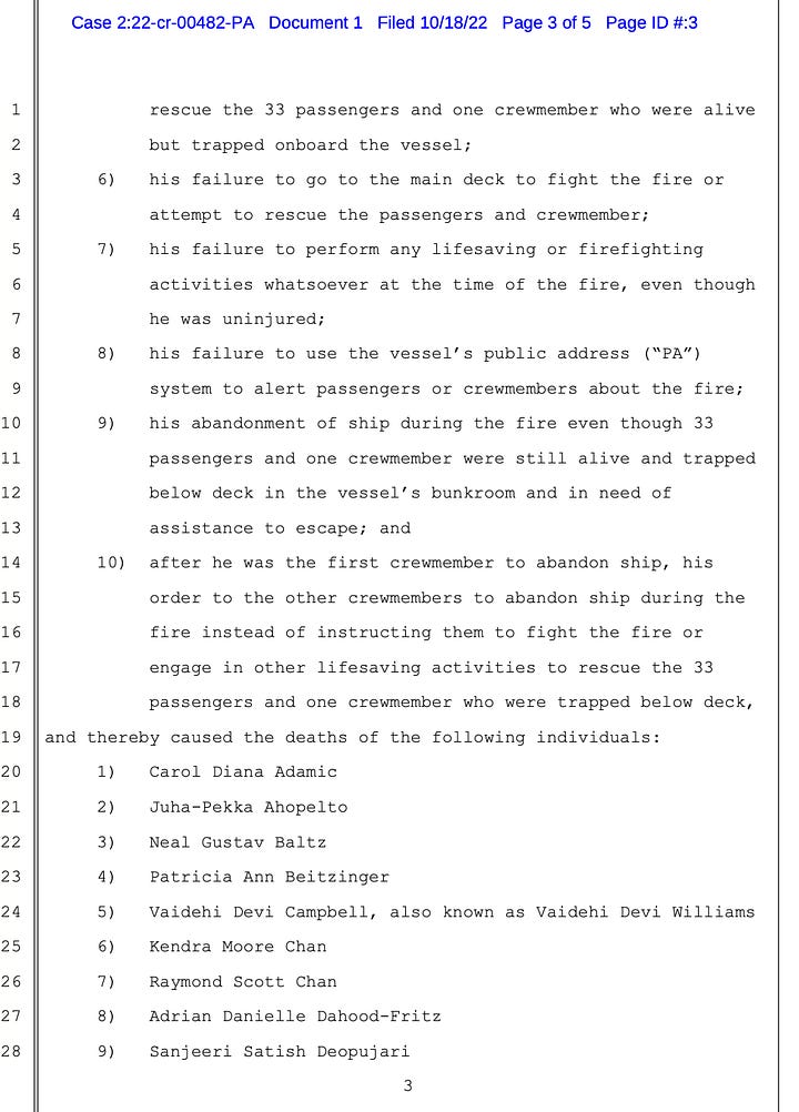 ‘These photographs and videos are essential to explain the Conception, the trip in question, and how defendant was grossly negligent in causing the 34 victims’ deaths,” prosecutors wrote in their opposition. “The jury is entitled to hear about the victims’ last days alive and how they died.”
