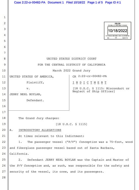 Boylan’s trial has brought an unfathomable amount of grief to the Los Angeles federal courthouse, where the 70-year-old longtime boat captain is being prosecuted under a little-used seaman’s manslaughter statute brought under federal maritime jurisdiction.