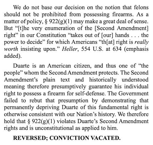 Duarte, 31, challenged his federal firearms conviction and 51-month prison sentence in light of the 2022 U.S. Supreme Court ruling in New York State Rifle & Pistol Ass’n v. Bruen, which says U.S. citizens have a constitutional right to carry firearms in public for self defense.