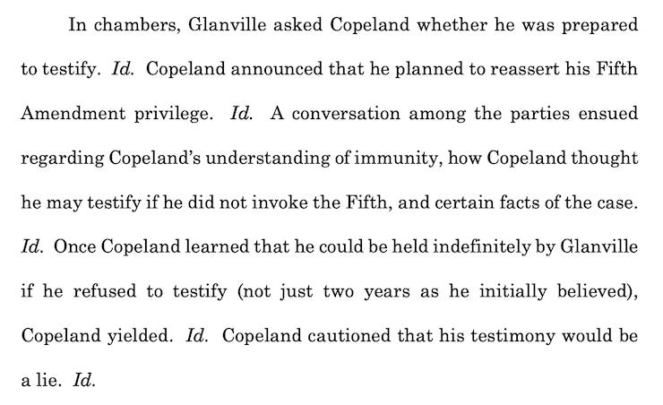 “I know 100 percent facts and I’m telling you now: I was not truthful. I was saying whatever they wanted me to say. I was saying whatever I could come up with,” Copeland testified on June 13.